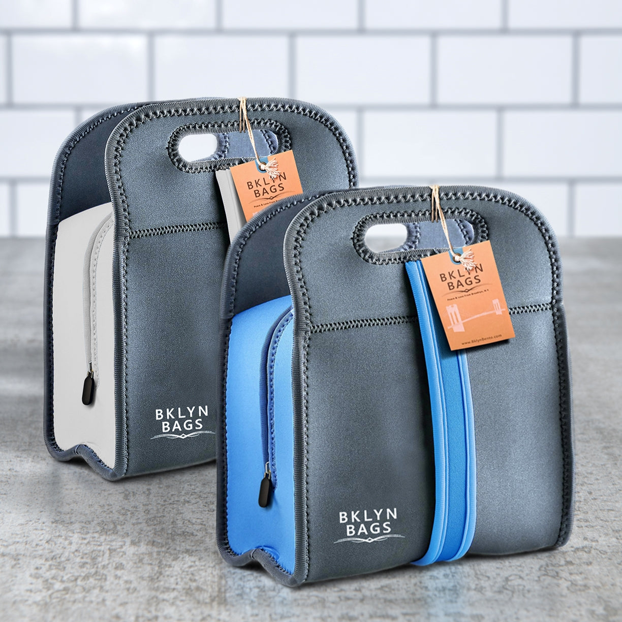 Bklyn Bento Neoprene Lunch Bag (Charcoal + Blue), Super Durable, Soft, Easy to Clean, Machine Washable