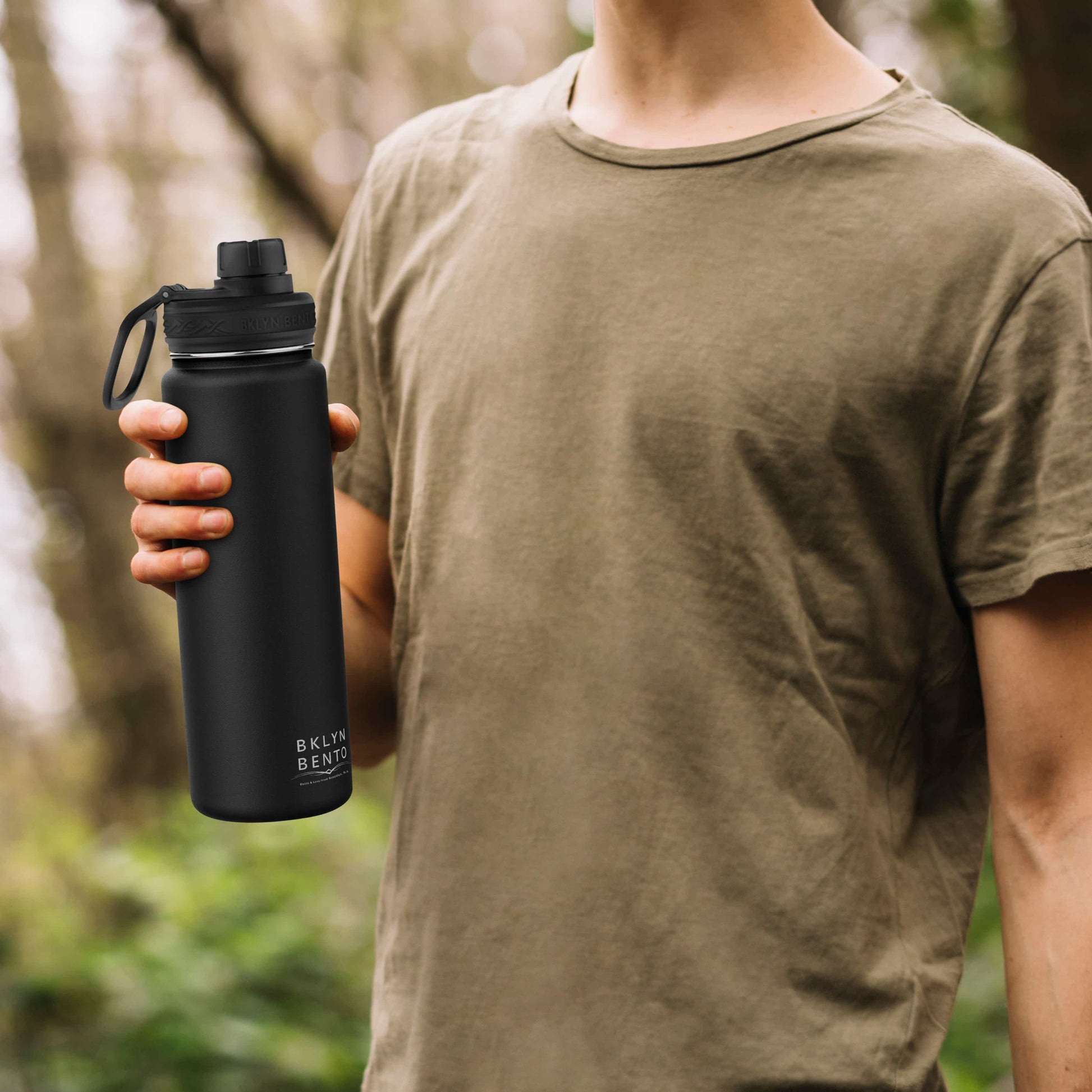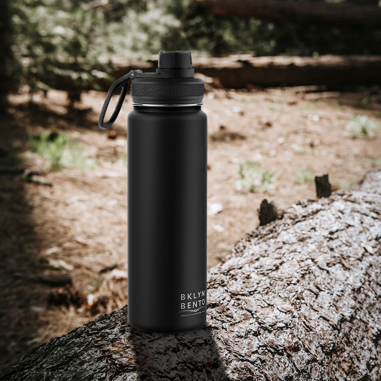 Bklyn Bento Stainless Steel Insulated Water Bottle With 3 Multi-Function Lids (Black / 24oz)