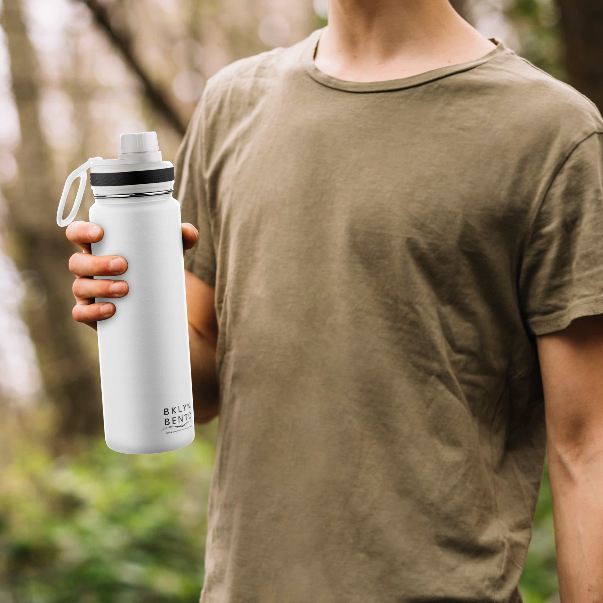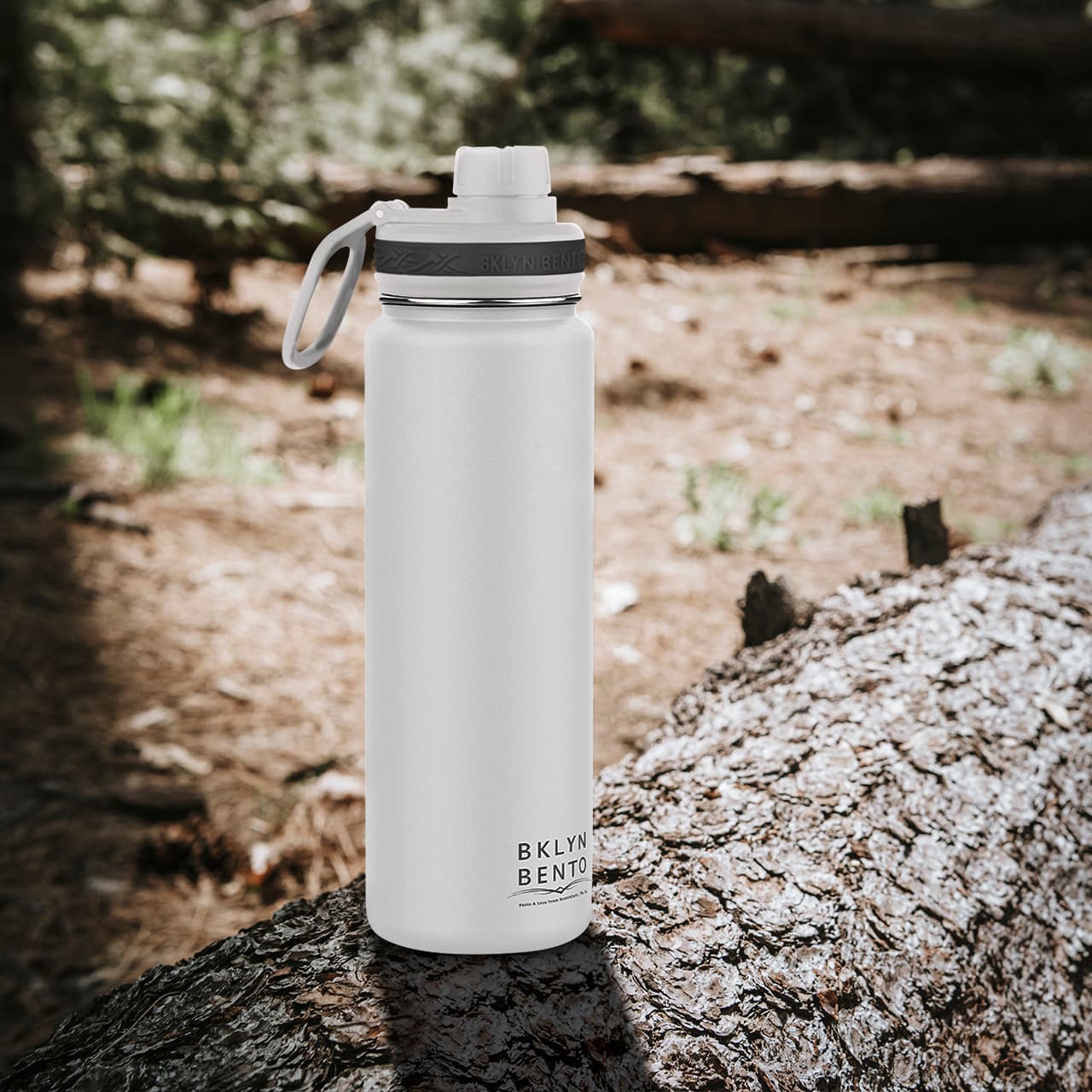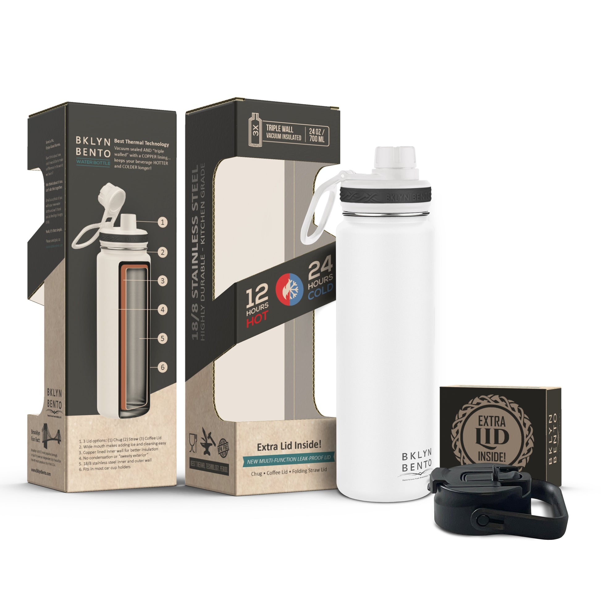 Bklyn Bento Stainless Steel Insulated Water Bottle With 3 Multi-Function Lids (White / 24oz)