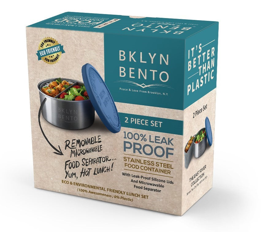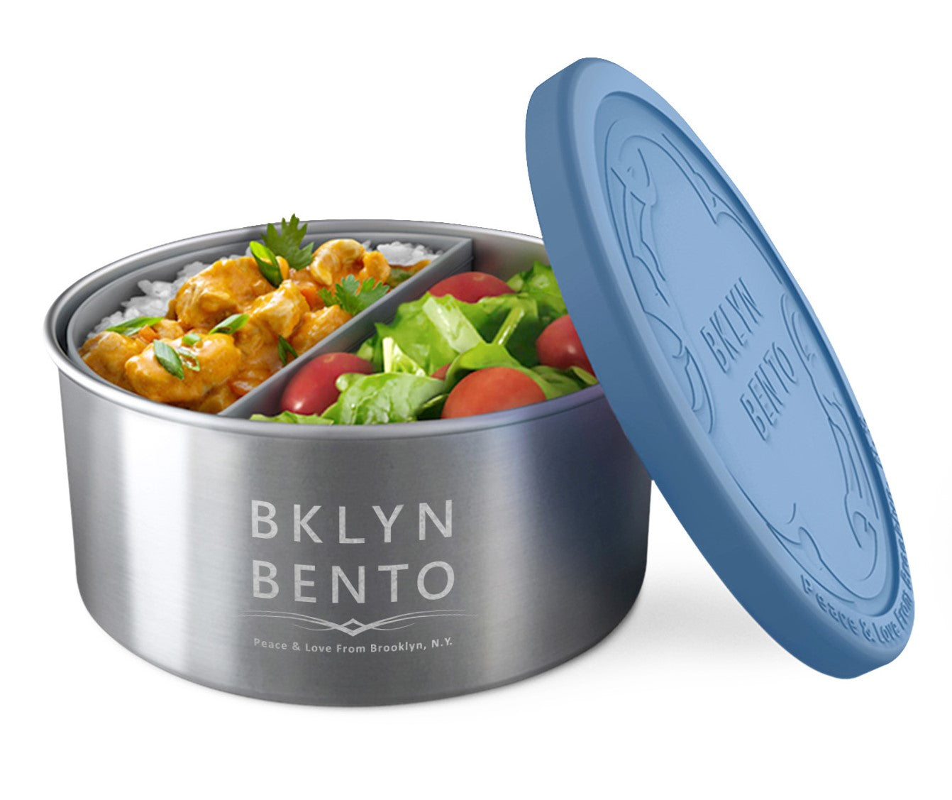 Bklyn Bento Large Round Stainless Steel Lunch Box Container With Removable Silicone Food Separator with Leakproof Lid