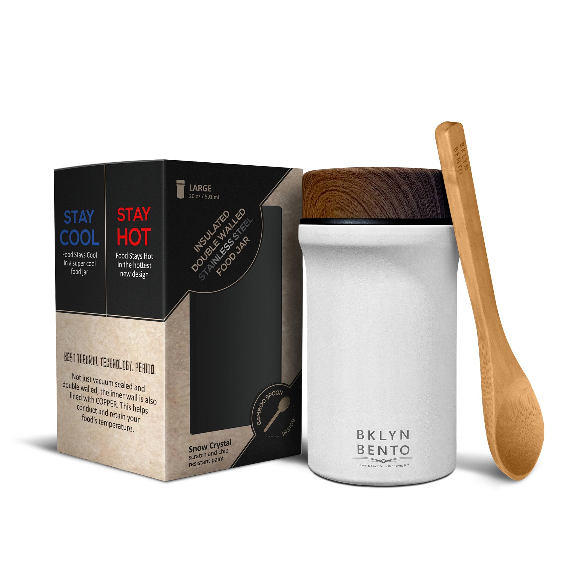 Bklyn Bento Stainless Steel Insulated Food Thermos with Bamboo Spoon, 100% Leak Proof Food Jar – Snow Crystal (Large / 20oz)