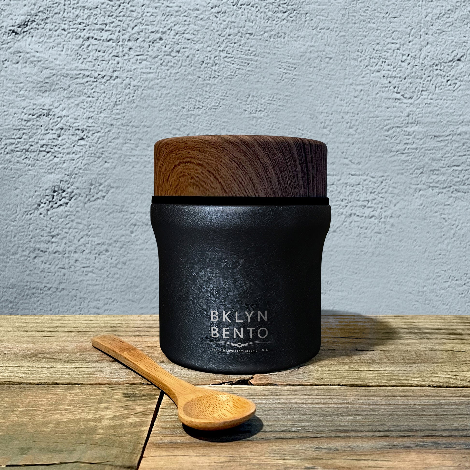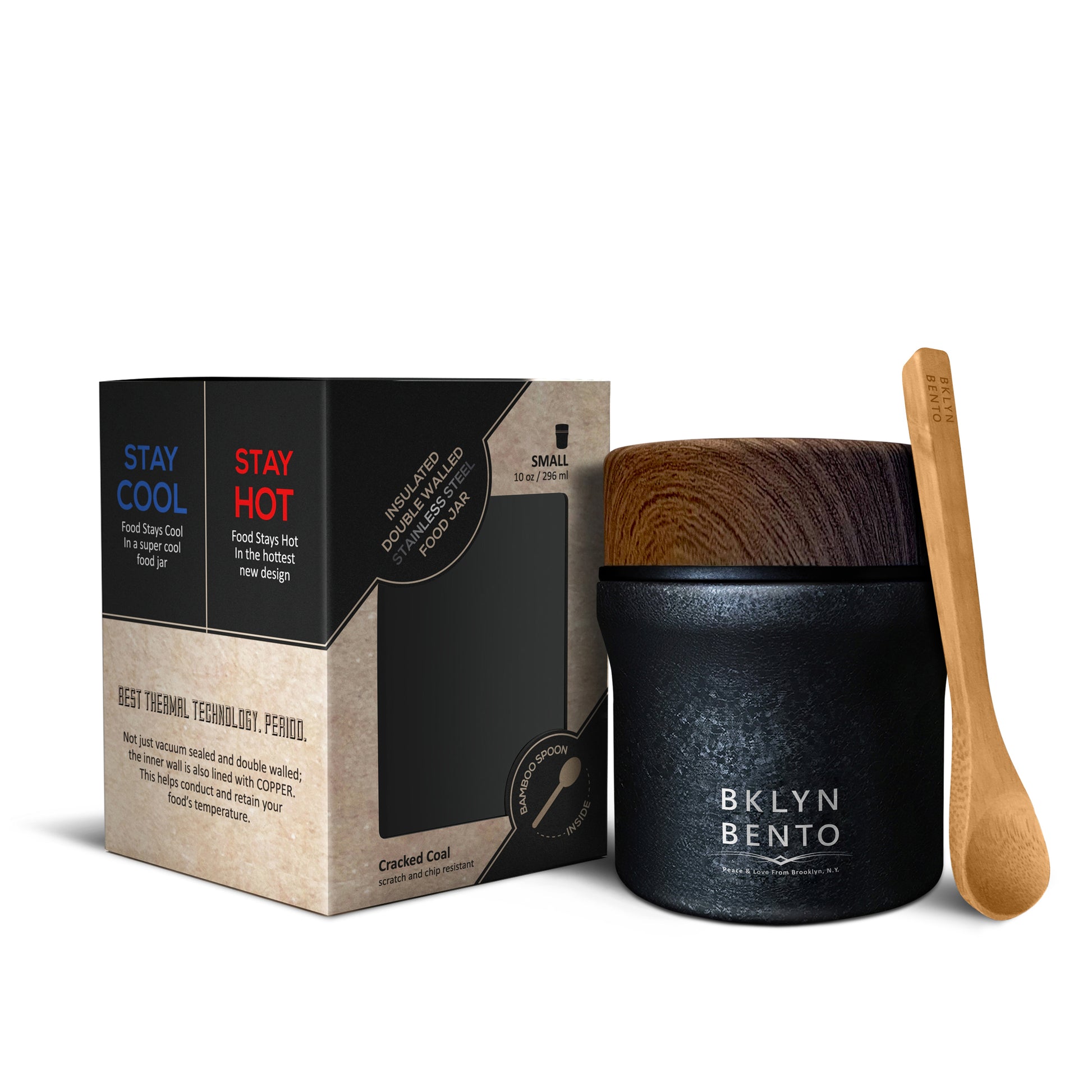 Bklyn Bento Stainless Steel Insulated Food Thermos with Bamboo Spoon, 100% Leak Proof Food Jar – Cracked Coal (Small / 10oz)